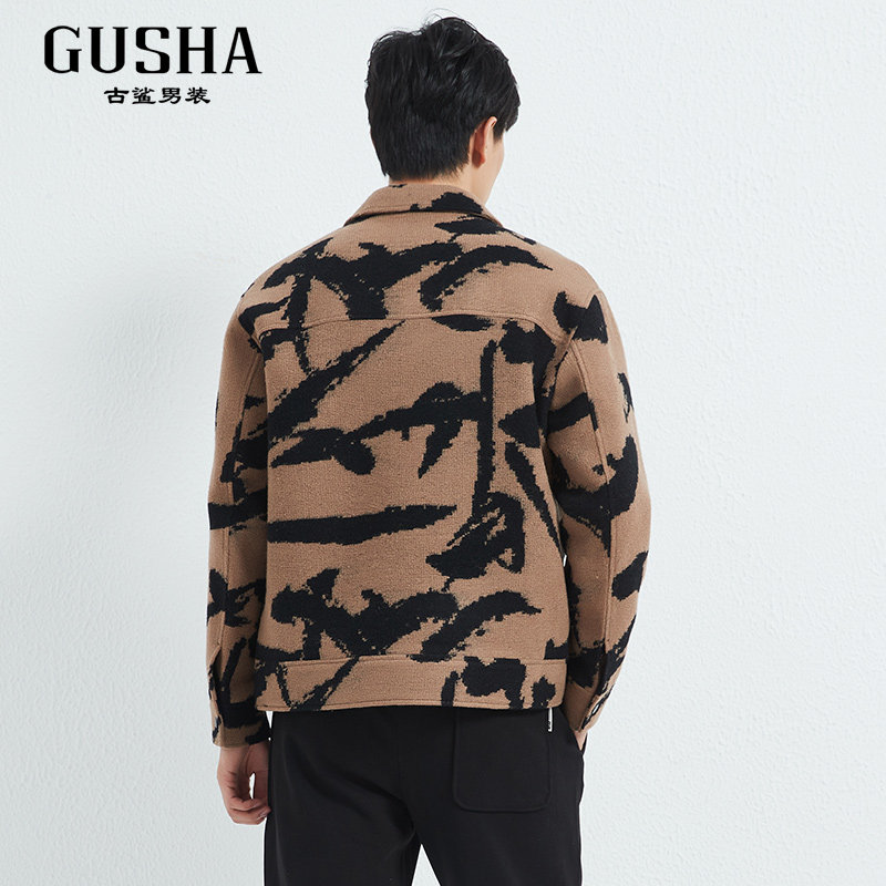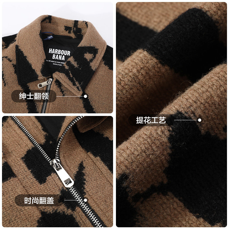 📚 【清仓】古鲨卡其色豹纹毛呢外套男美拉德羊毛高级夹克2025冬
