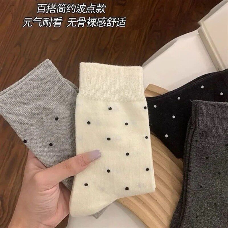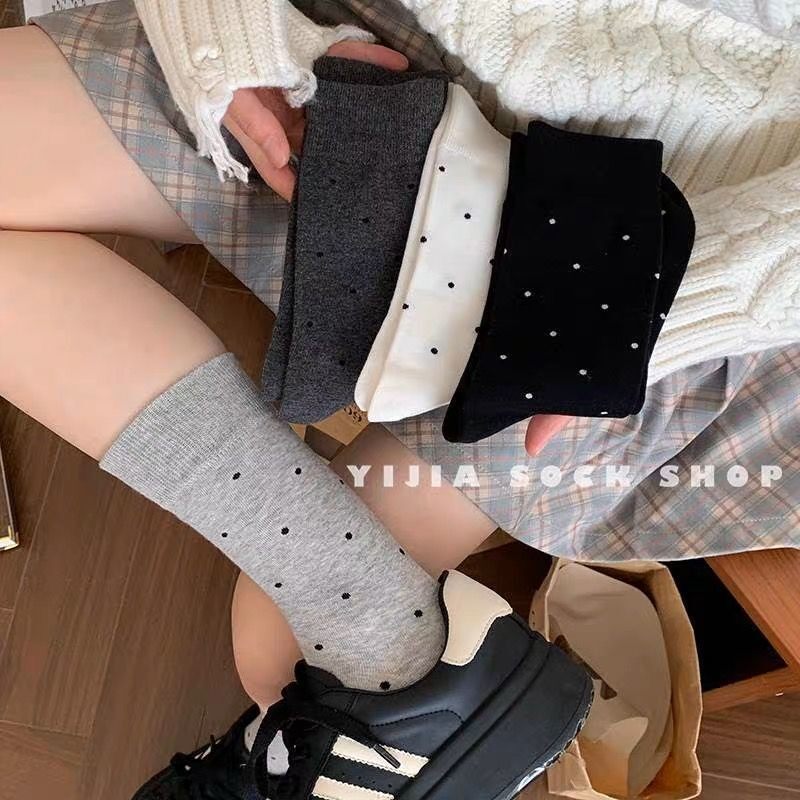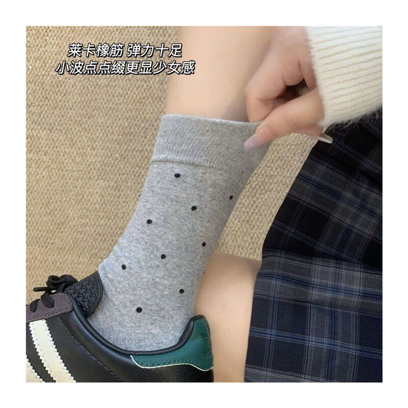 📚 百搭袜子女春秋季2026新款网红波点可爱长袜百搭灰色中筒堆堆袜
