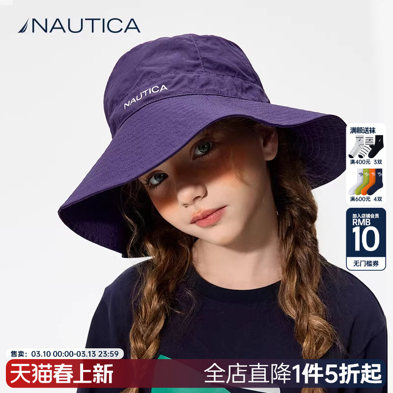 09¥ CZ057 43WCUE4R1F6¥ https://m.tb.cn/h.ieFQEyt NAUTICA/诺帝卡童装男童女童渔夫帽春夏季儿童遮阳防晒帽户外出游 --------------------- 【原售价】279元 【现售价】149元。