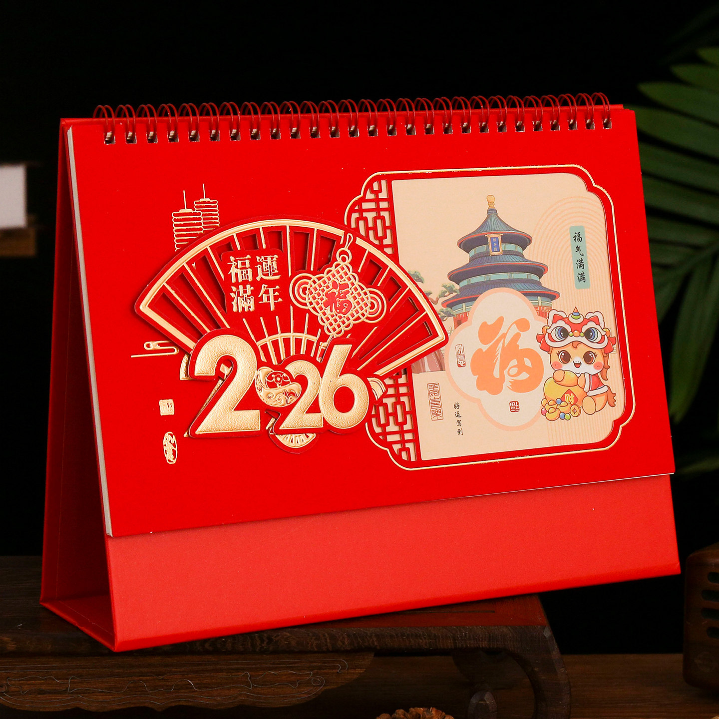 📚 2026年新款中国红三角台历新年礼品日历本订制创意马年备忘录大格子喜庆烫金高端高颜值平安喜乐日历定制批发