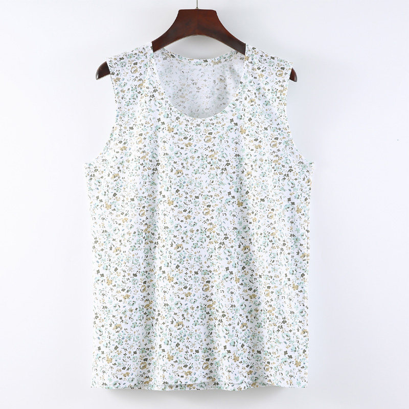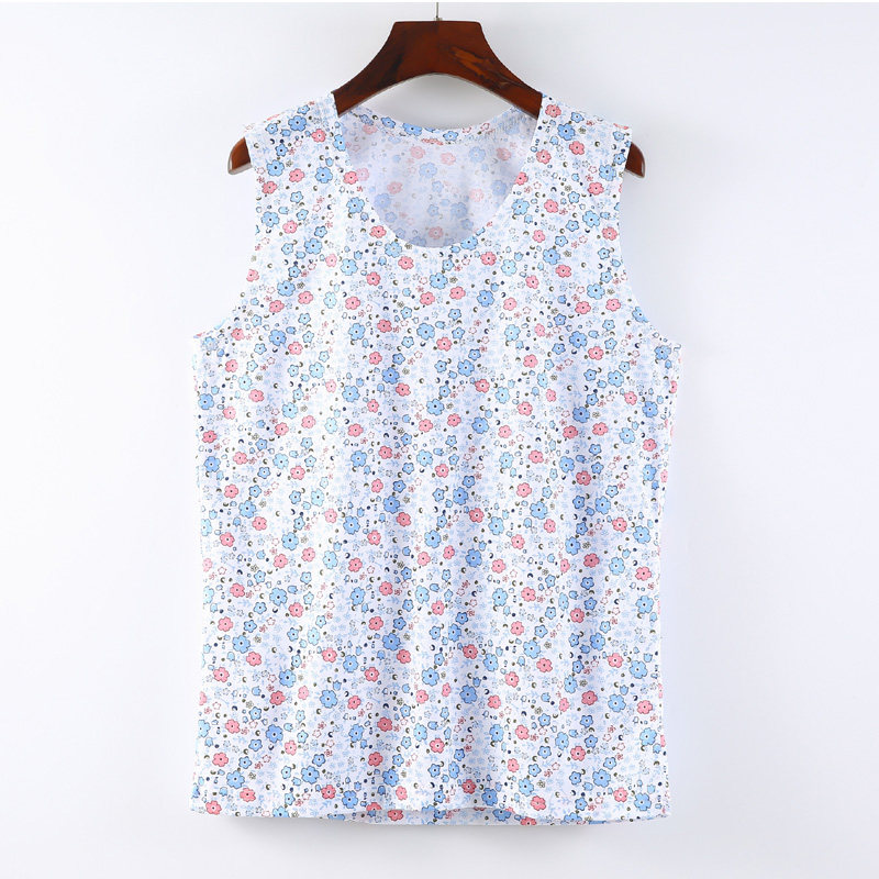 📚 女士针织纯棉宽肩圆领碎花汗衫背心妈妈花衫夏季贴身睡衣无袖衫