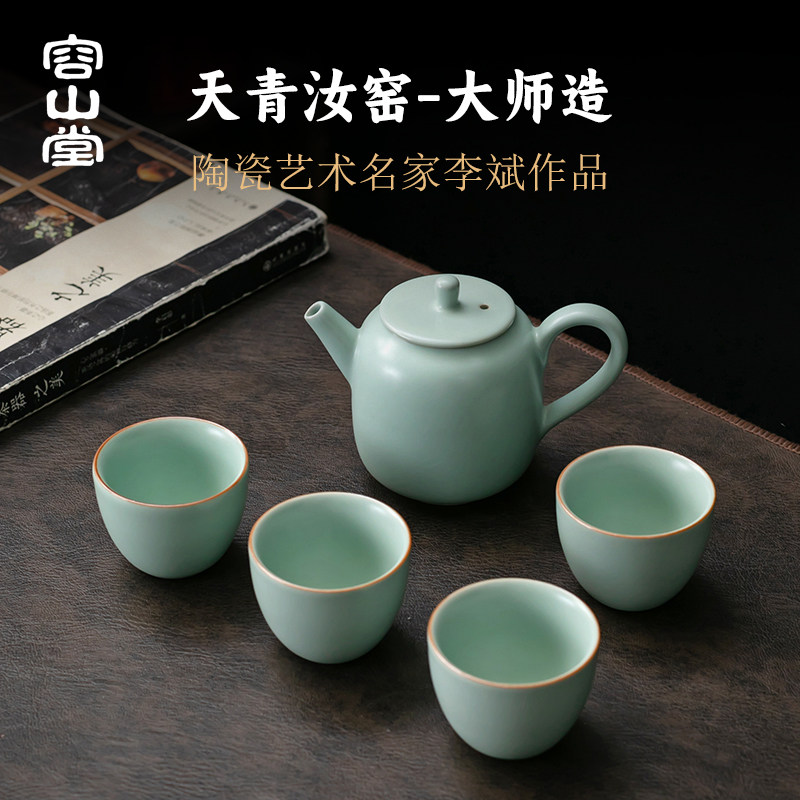 📚 容山堂固德李斌大师汝窑茶具茶壶套装功夫茶具泡茶专用便携礼盒装