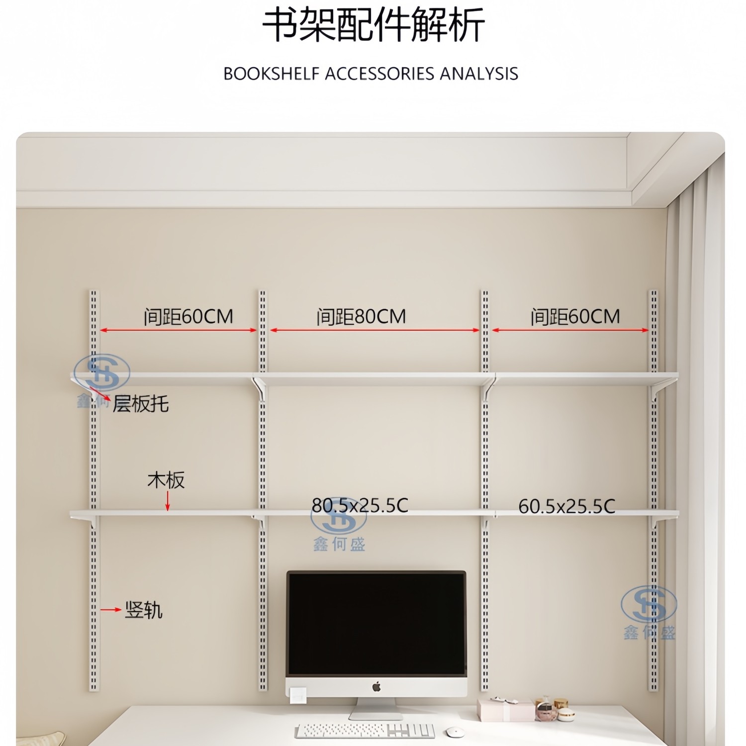 📚 白色AA柱置物架书桌书架收纳金属木板层板架储藏室八百库上墙架