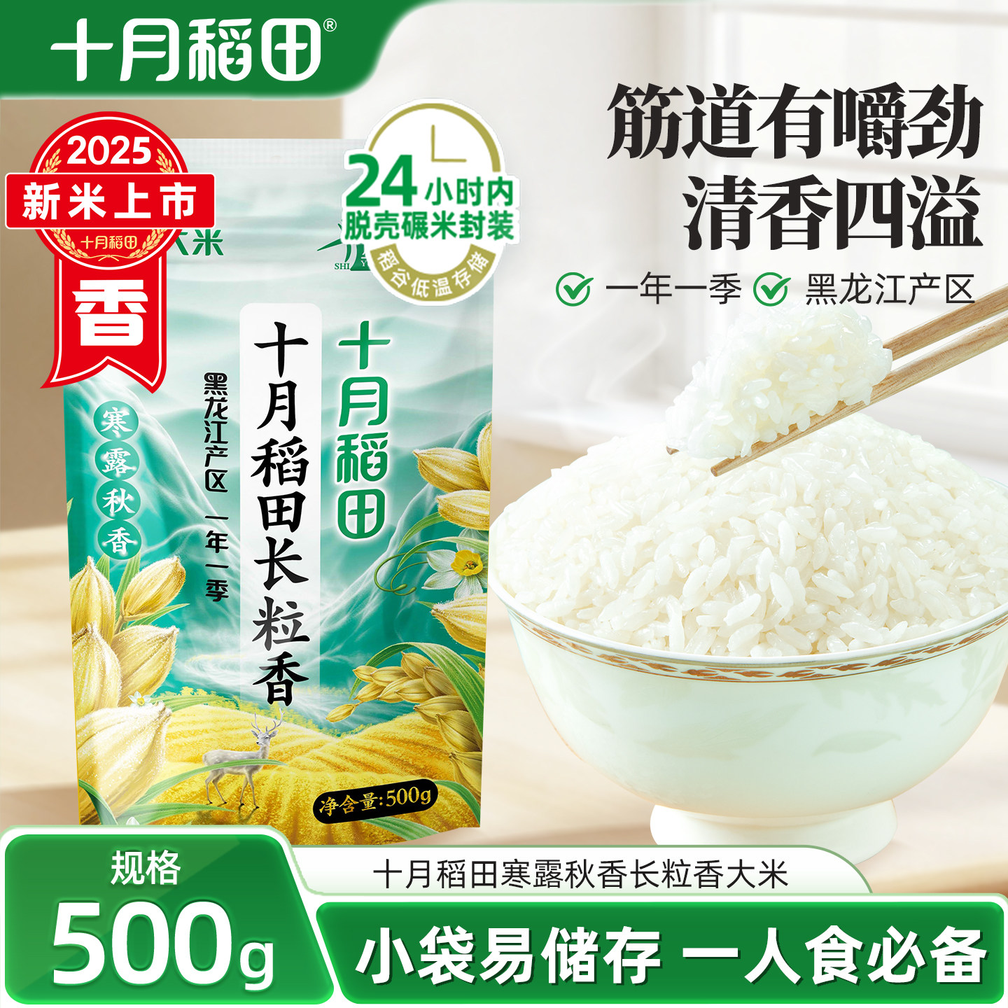 📚 2025新米十月稻田寒露秋香长粒香大米500g东北大米香粳米小袋米