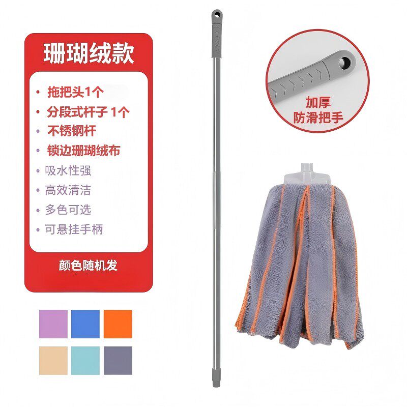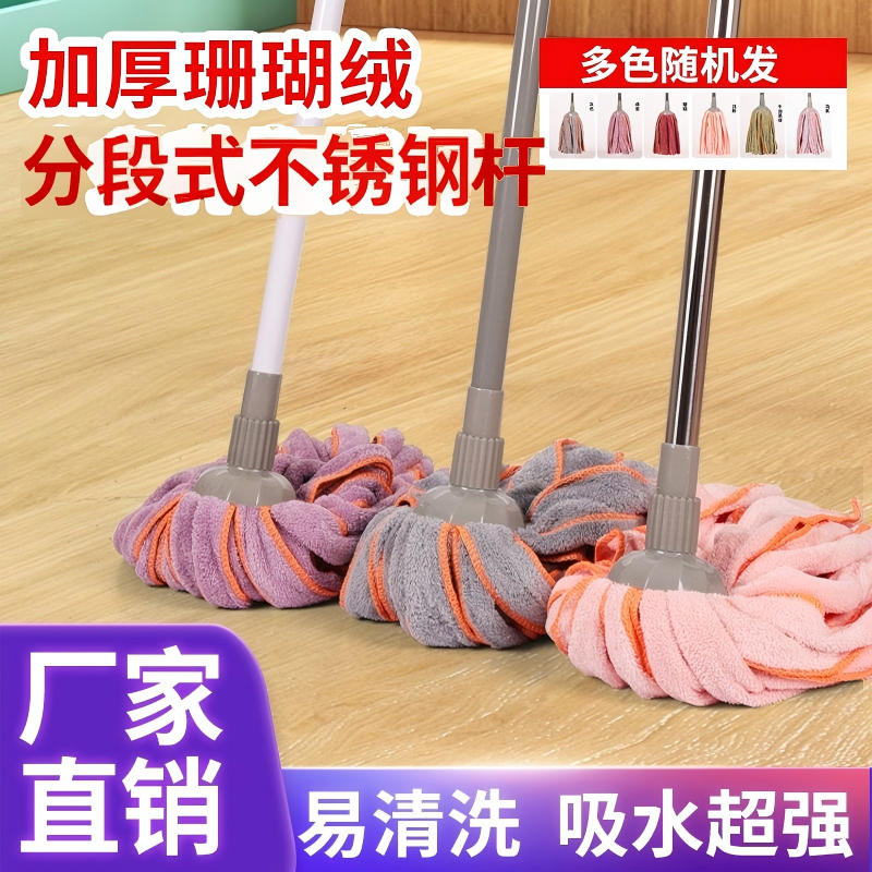 📚 锁边珊瑚绒毛巾拖把平圆头家用老式超强吸水不掉毛干湿两用大墩布