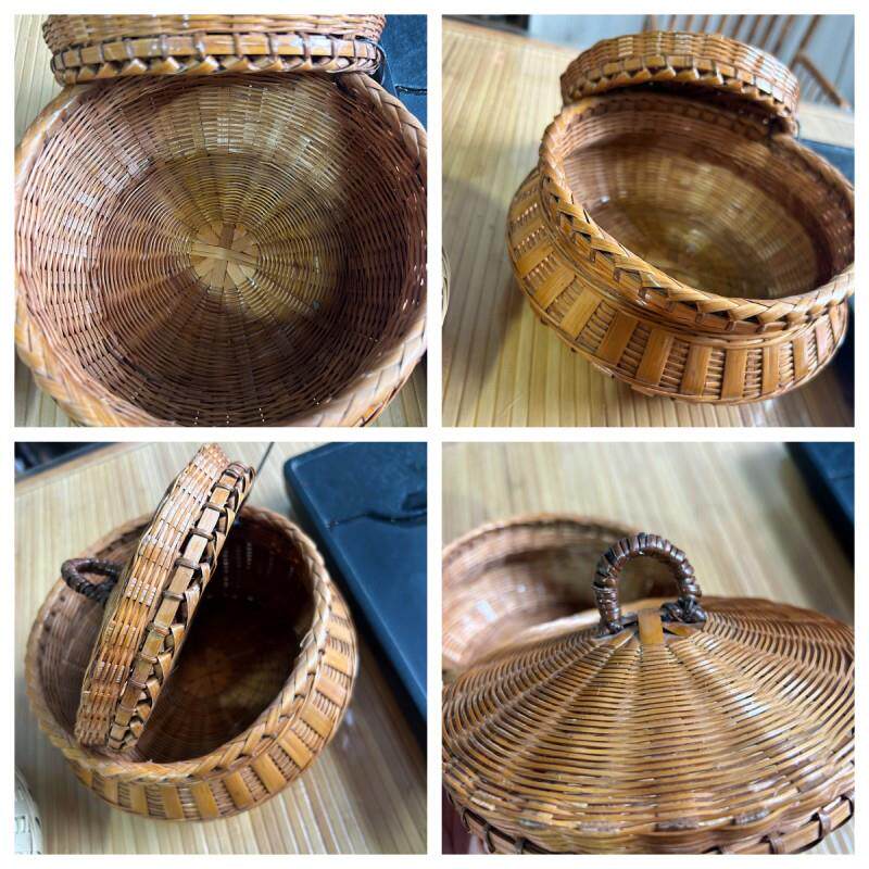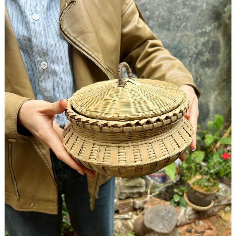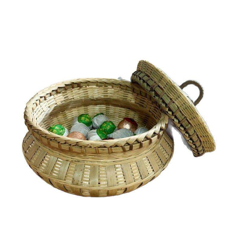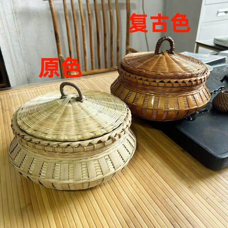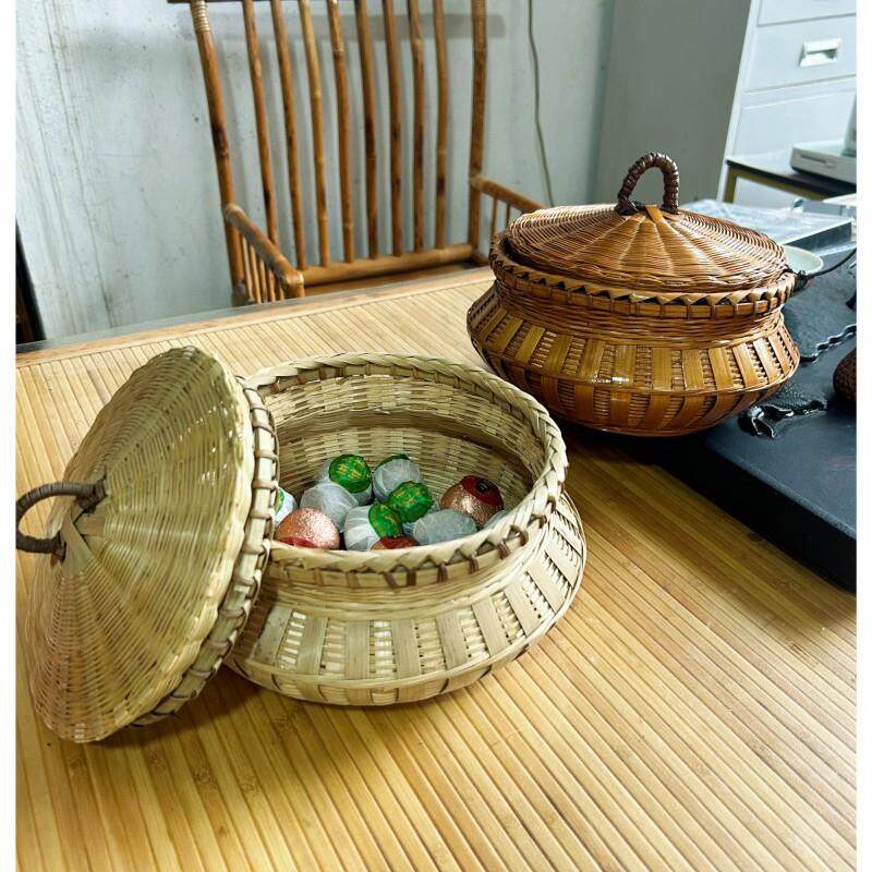📚 手工竹编制品带盖装茶叶竹筐馒头筐圆形编织收纳筐篓竹子鸡蛋筐