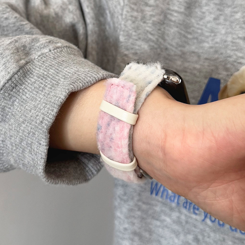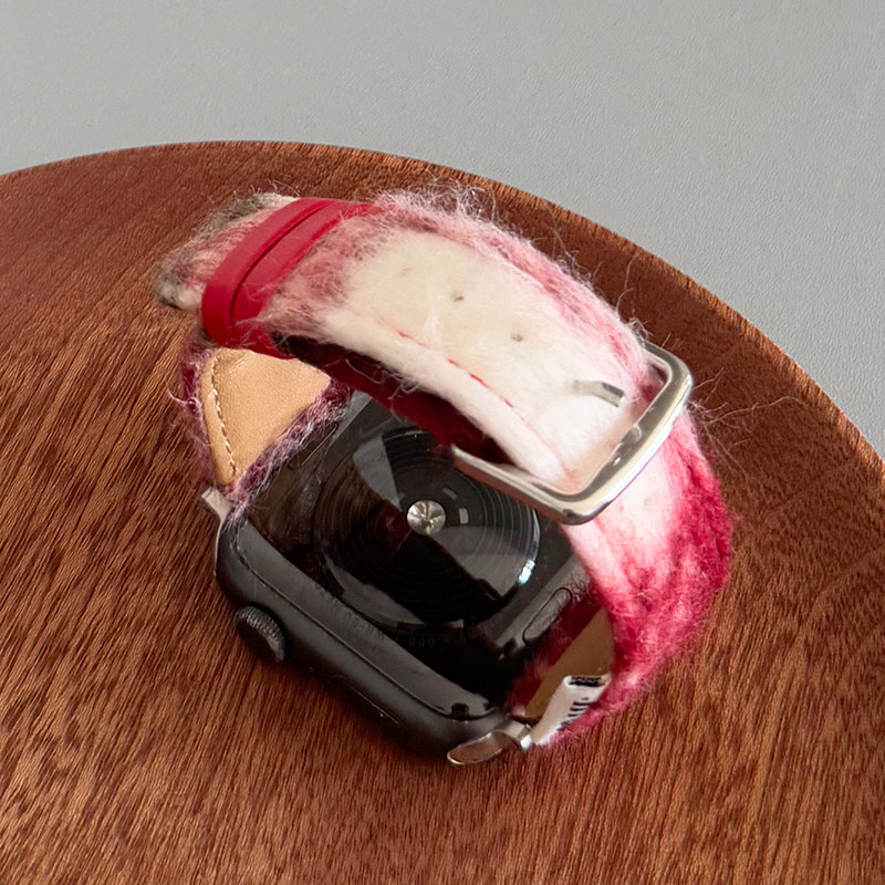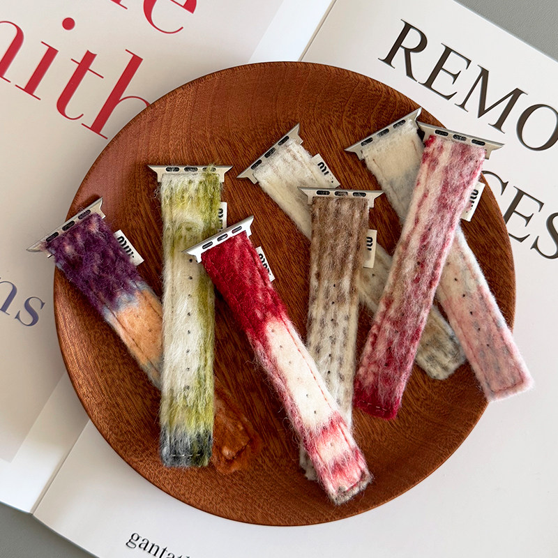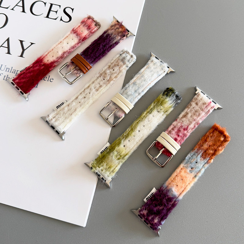 📚 雪糕毛绒渐变高级感皮革iwatch表带S10适用苹果SE手表秋冬新款789