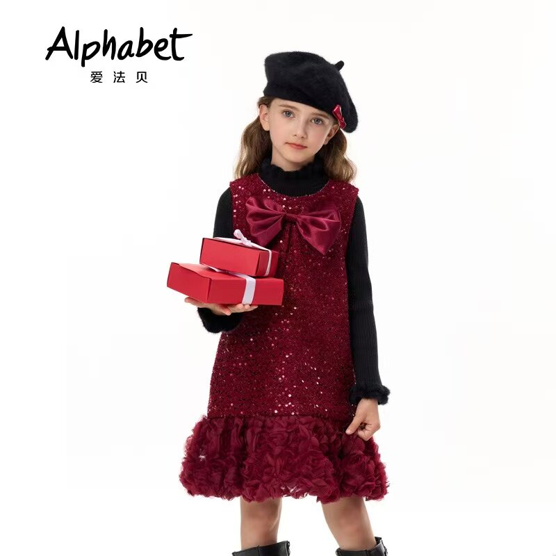 📚 爱法贝童装专柜正品2025冬季新品女童儿童喜庆连衣裙194Q432