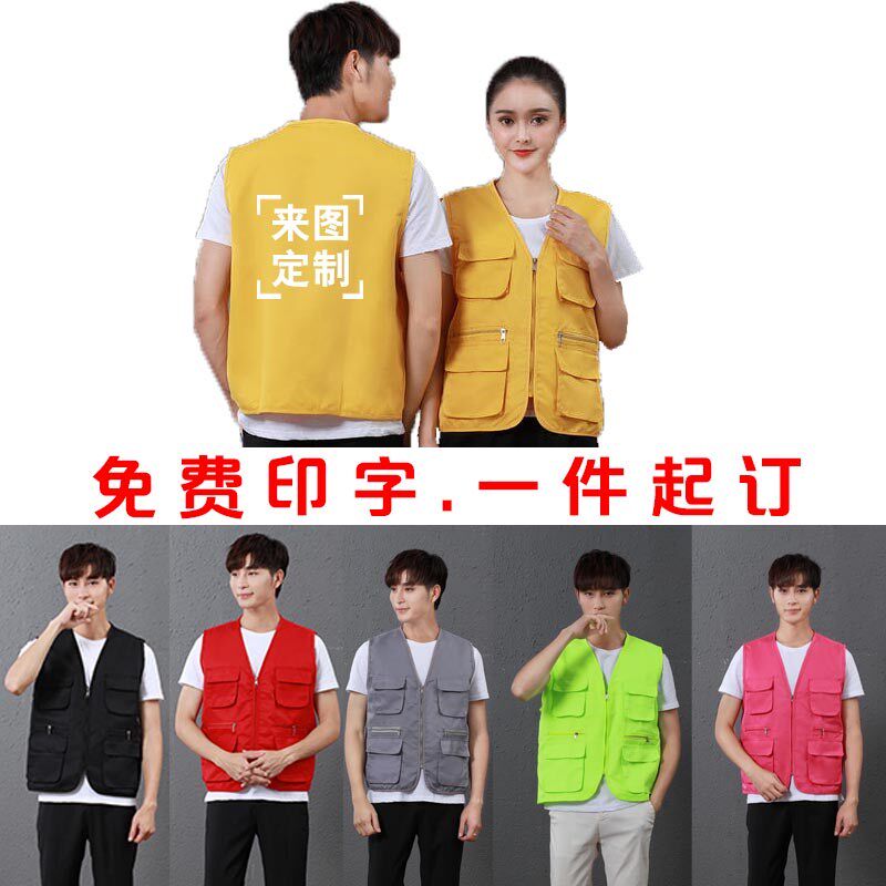 📚 工装马甲定制多口袋工作服红背心摄影旅行团体服装饰马甲广告印lo