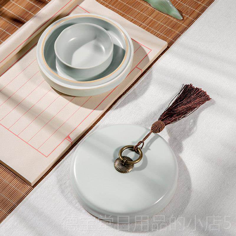 📚 正品兰斋文房双圈保湿防蒸墨发干墨砚台毛不笔墨水书法专用带盖墨