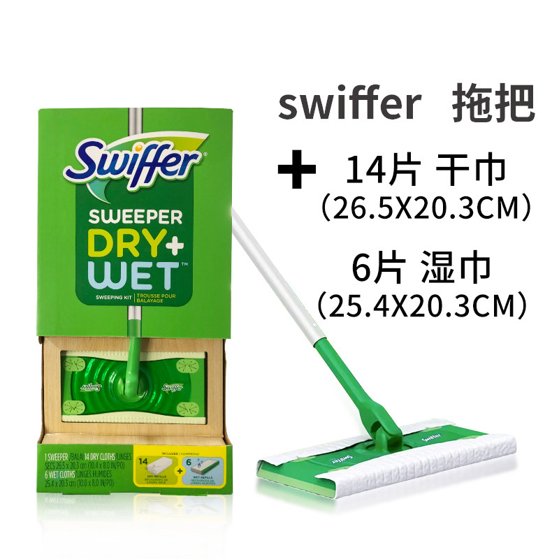 📚 进口现货Swiffer懒人免洗平板拖把套装干湿两用除尘干巾湿巾套装