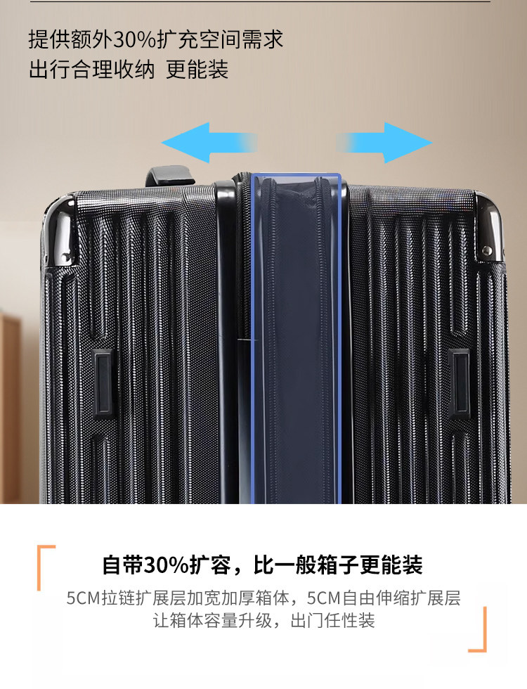 📚 行李箱新款双层防爆拉链密码箱子纯pc材质结实耐用拉杆箱男可扩容