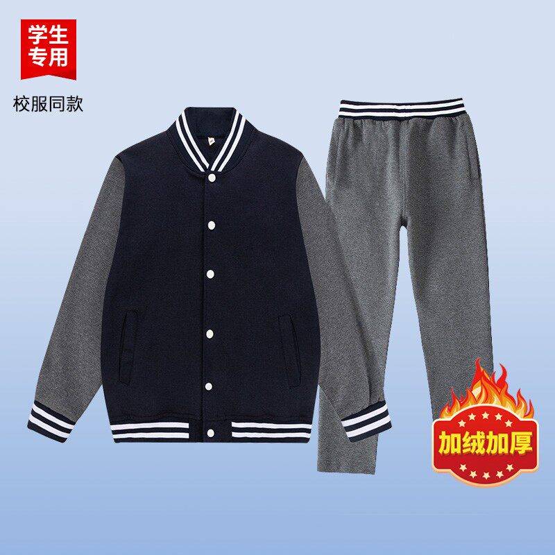 📚 伊顿校服中小学生校服春秋加绒棒球服藏青运动服纯棉上衣裤校服