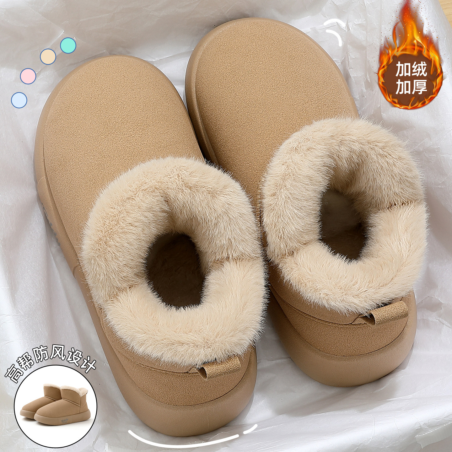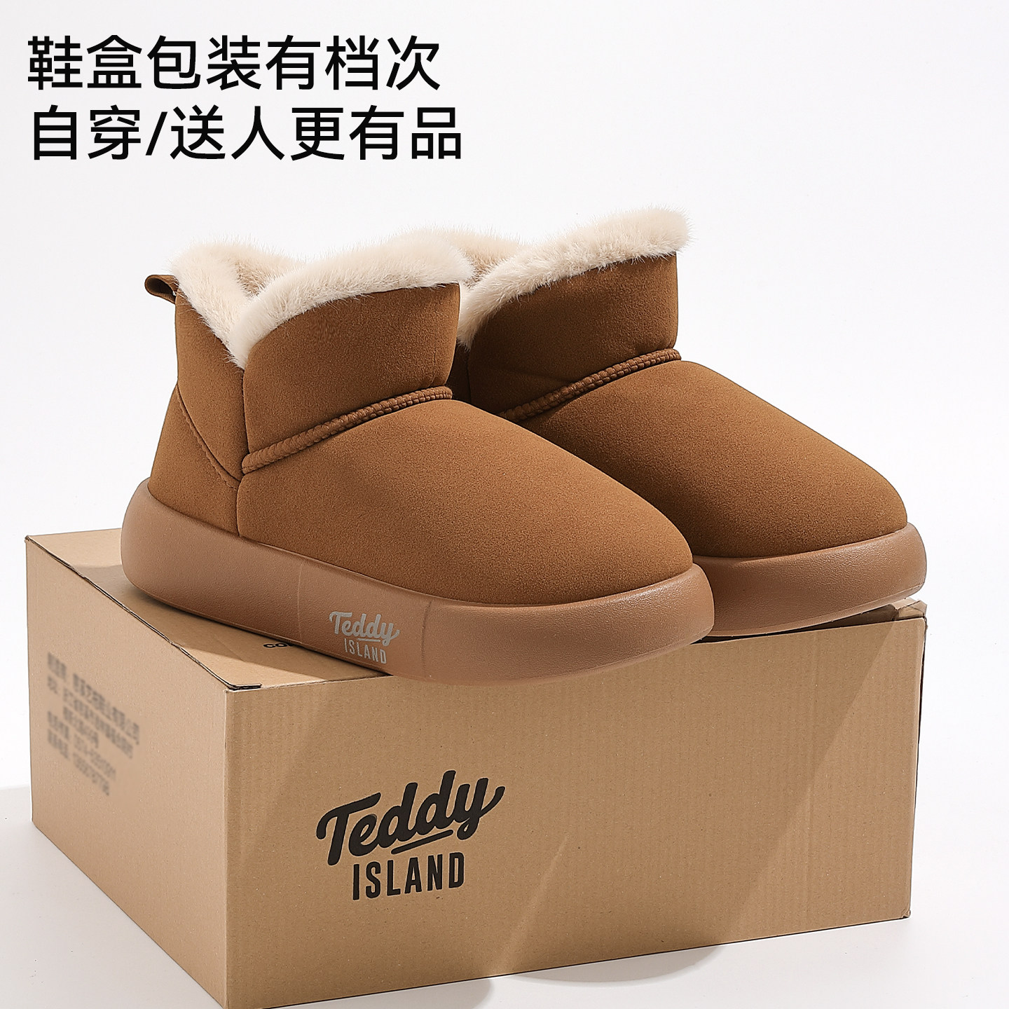 📚 猫力厚底增高雪地靴女款2025新款冬季加绒加厚套筒圆头保暖棉鞋女