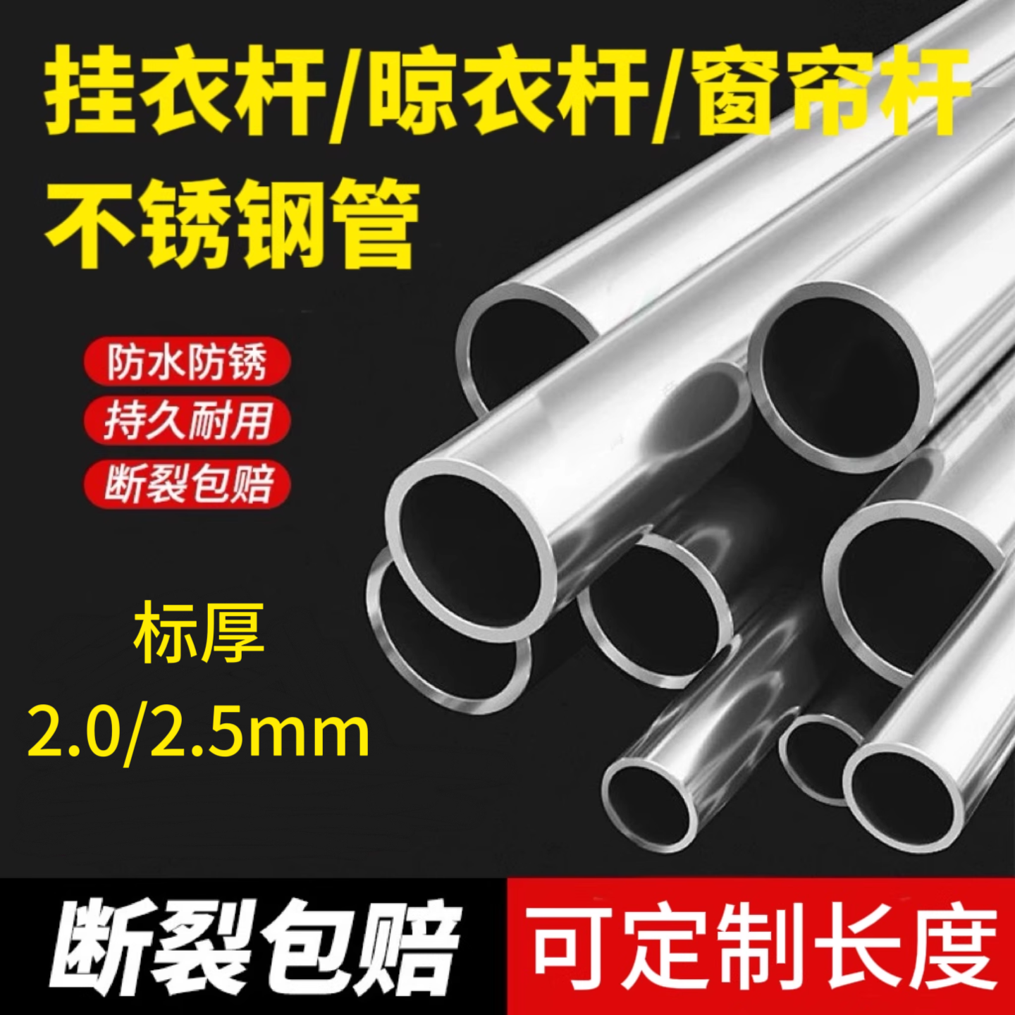 📚 实厚2mm晾衣杆定制304不锈钢管户外阳台晾衣杆挂衣杆衣柜杆健身杆