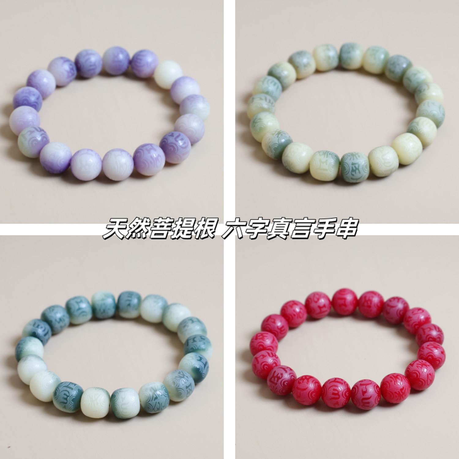 📚 天然菩提根手串六字真言箴言手链单圈绕指柔文玩男女款佛珠念珠