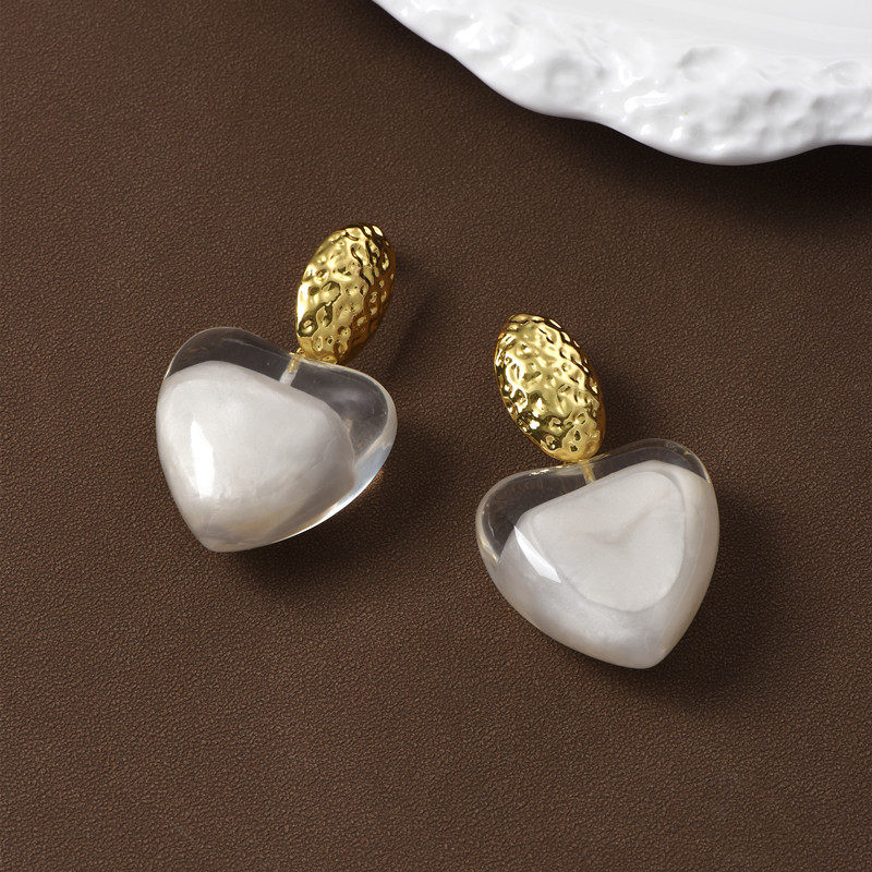 📚 张悦儿同款白色爱心耳环女轻奢小众高级感夸张桃心树脂耳钉耳饰