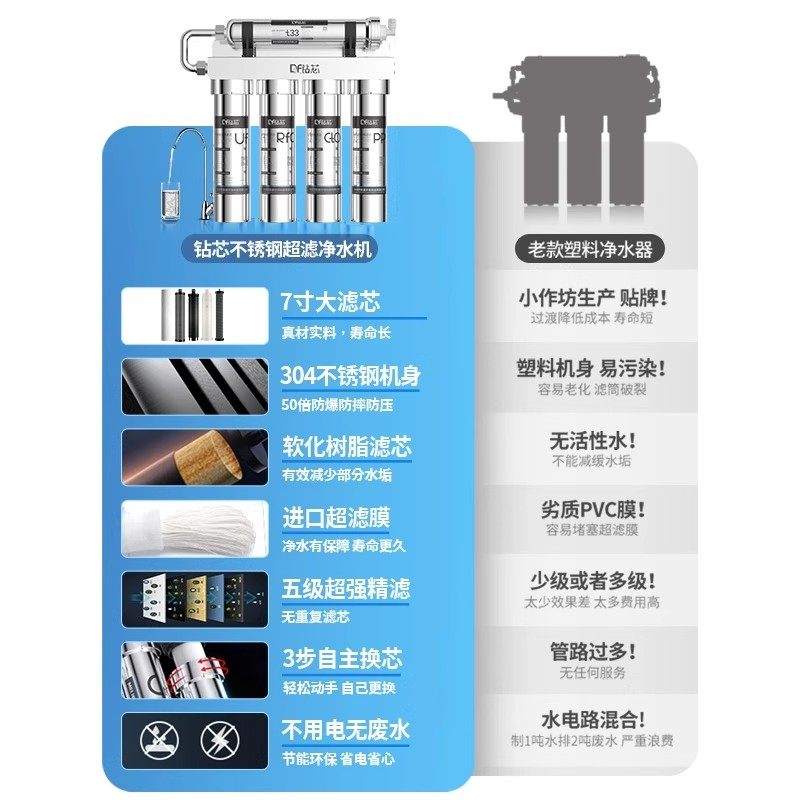 📚 钻芯超滤净水器家用直饮五级不锈钢厨房自来水龙头过滤厨下净水机