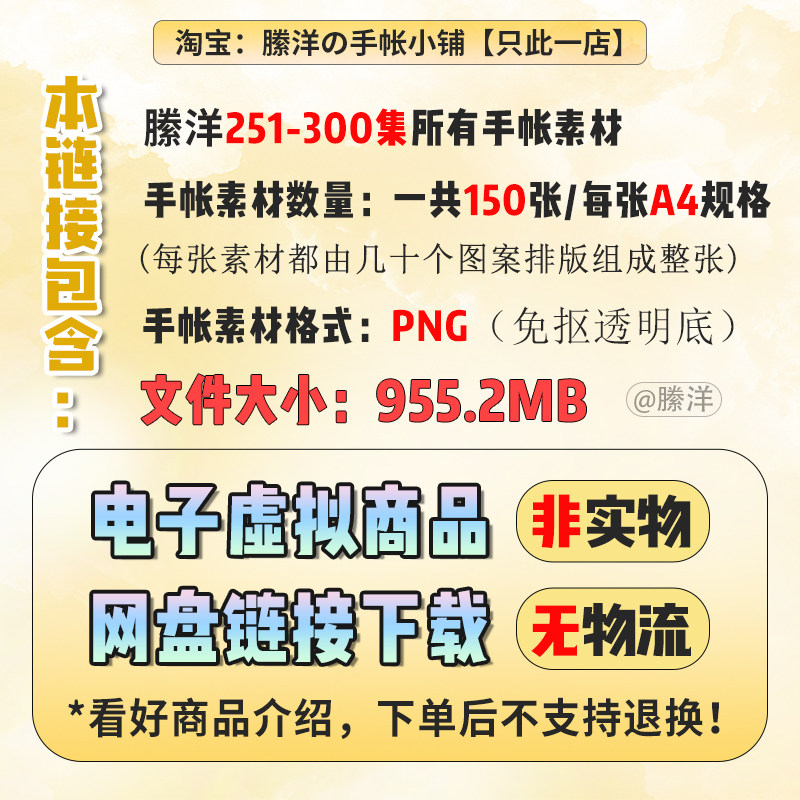 📚 縢洋超全电子手帐素材251-300集PNG大合集透明底免抠图贴纸非实物