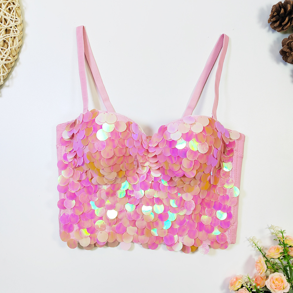 📚 亚马逊束身鱼骨文胸外穿亮片钉珠吊带幻彩鱼鳞片裹胸马甲式