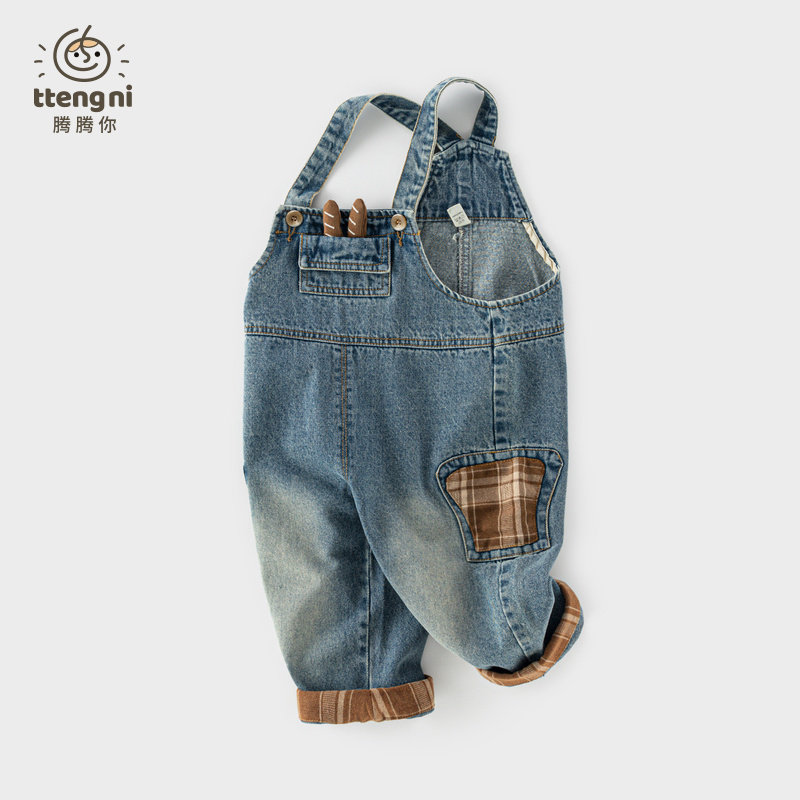 📚 男宝牛仔背带裤春秋卡通贴布宝宝休闲牛仔长裤1-5周岁儿童裤子秋