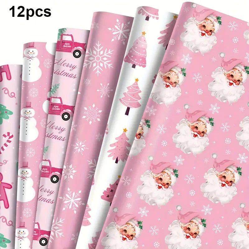 📚 12pcs Pink Christmas Gift Packaging Gift Decoration Paper, S