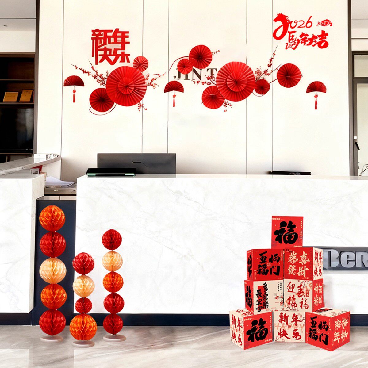 📚 元旦新年布置装饰马年公司前台场景春节氛围售楼部吧台背景墙面贴