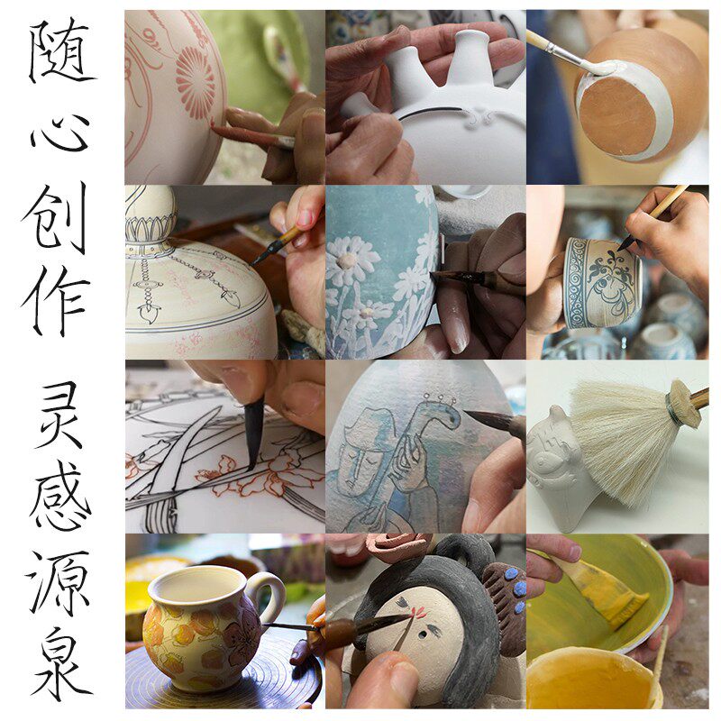 📚 陶艺陶瓷绘画青花勾线笔填色毛笔涂抹料笔釉上彩绘分水笔补水扫灰