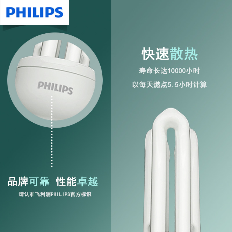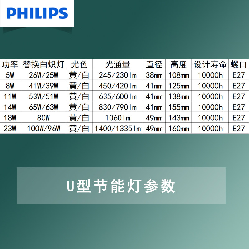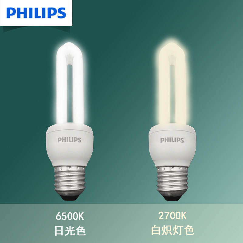 📚 飞利浦节能灯U型三基色白光黄光3w5w8w11w14w18w23w大螺口E27灯泡