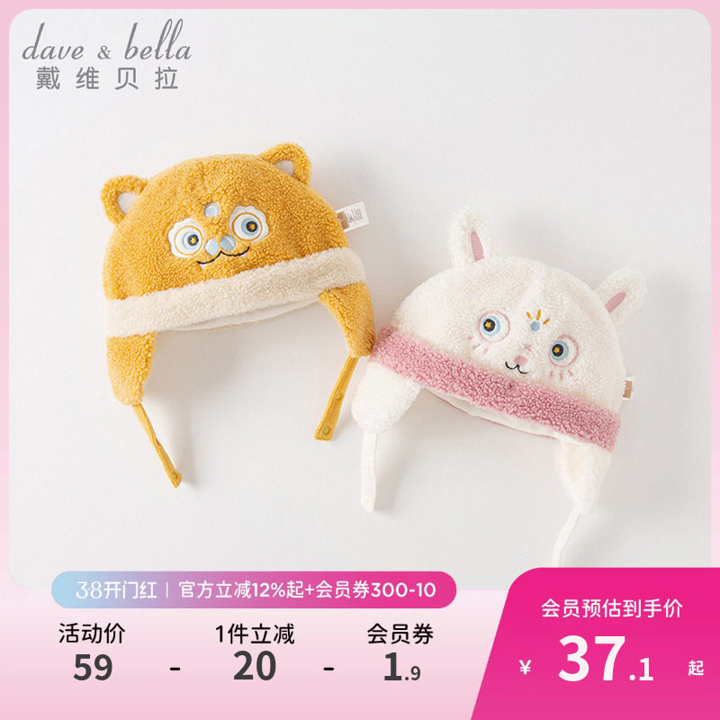 📚 戴维贝拉儿童帽子新款冬季女童仿羊羔绒护耳帽男童国风新年帽保暖