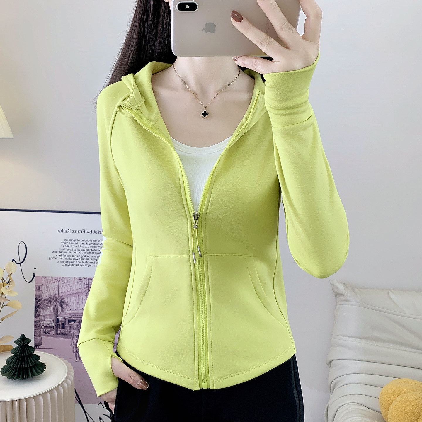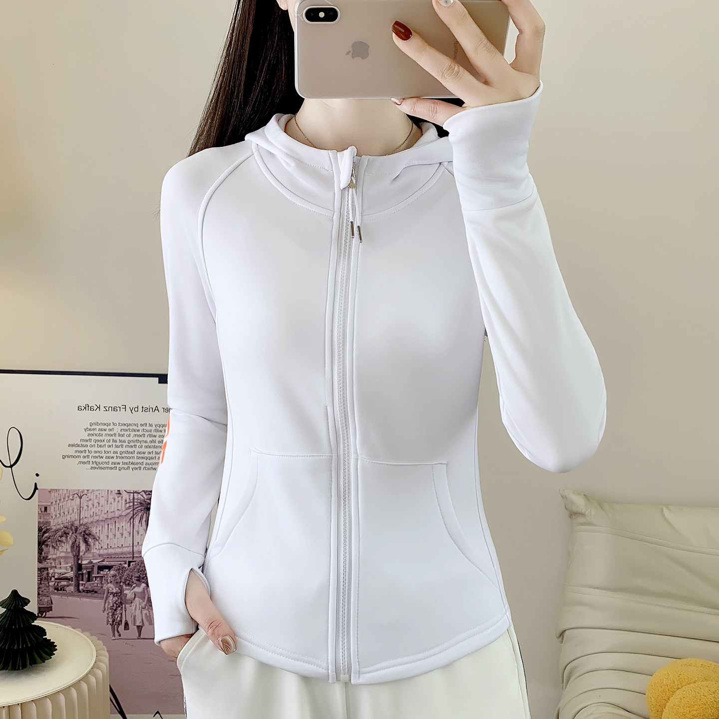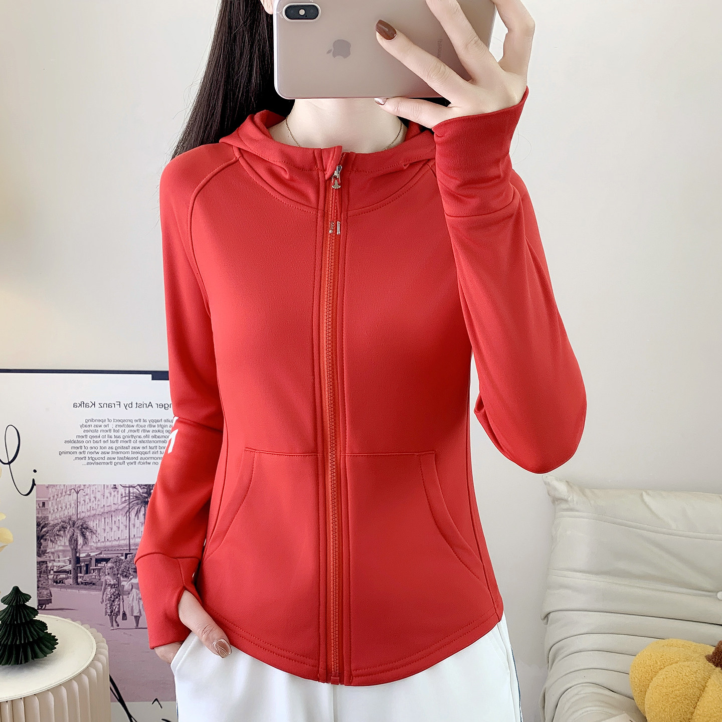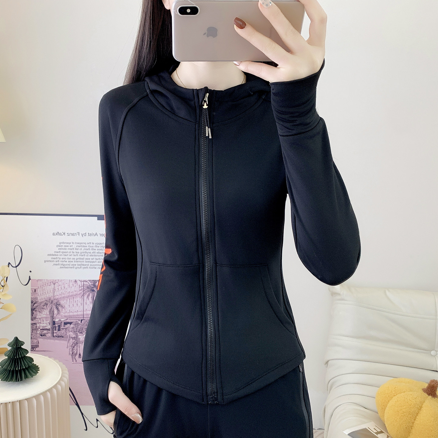 📚 连帽加绒外套女修身跑步健身衣户外广场舞团体队服开衫运动瑜伽服