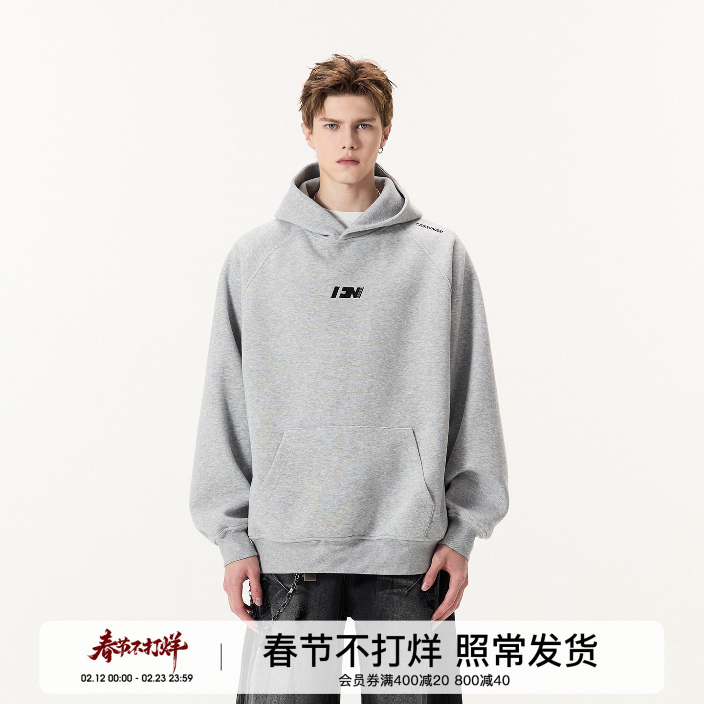 🔥解锁冬日新宠!FORNINES刺绣重磅加绒灰色卫衣男款连帽衫💥