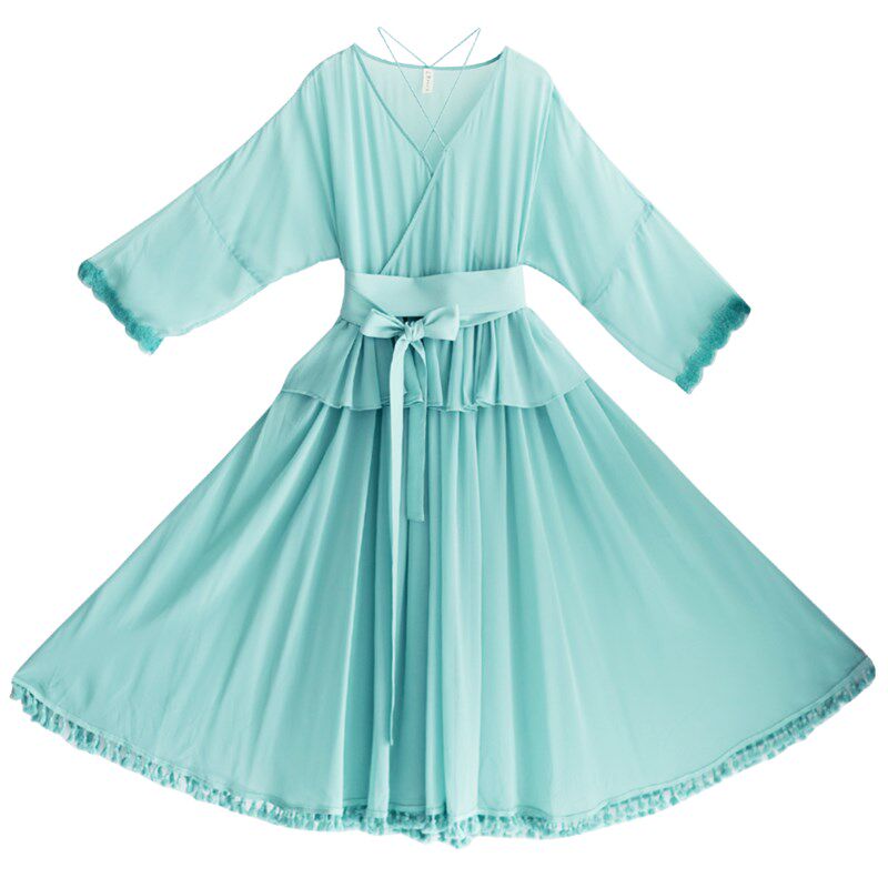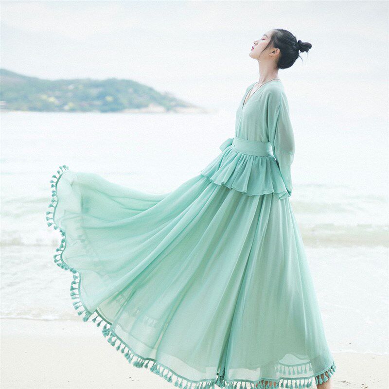 📚 【158元区】假两件连衣裙女海边2025春夏新款改良版汉服长裙女