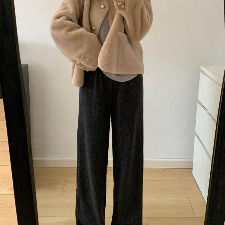 📚 冬季加绒裤子米白色显瘦雪尼尔直筒裤2025新款加厚灯芯绒阔腿裤女