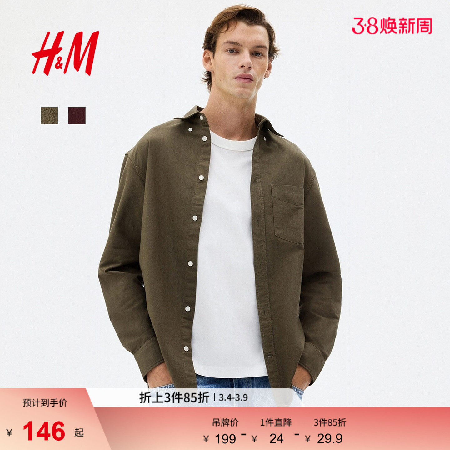 57¥ CA381 3pEKUu8YaHe¥ https://m.tb.cn/h.idzGp6q HM男装衬衫春季标准版型牛津纺内搭通勤长袖衬衣1257417 --------------------- 【原售价】199元 【现售价】199元。