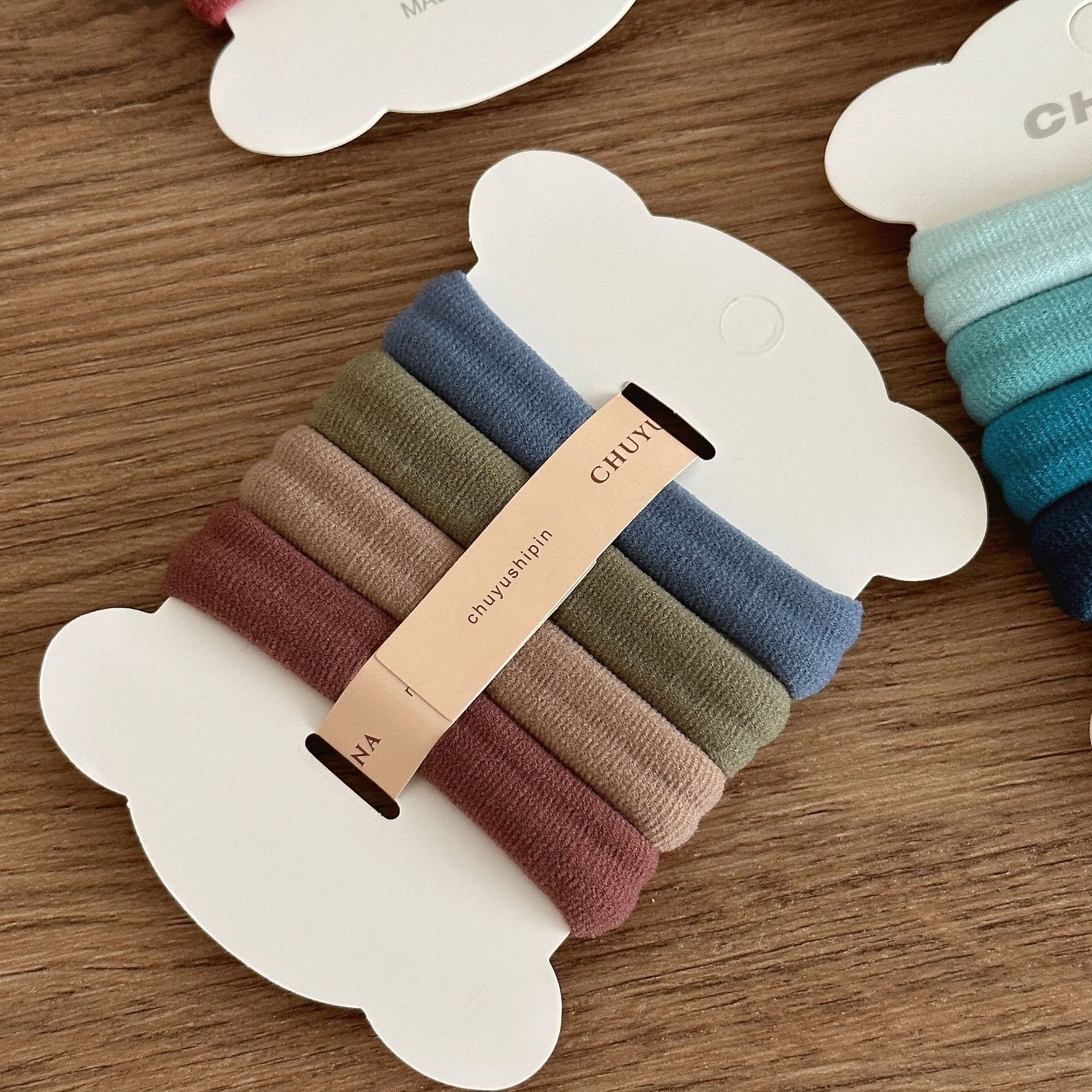 📚 Raffia加宽4条装高弹力毛巾圈耐用皮筋扎头发绳头饰无缝马尾发圈