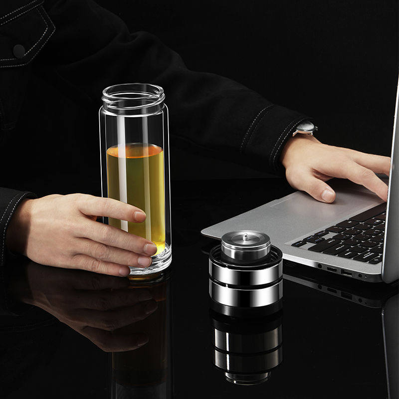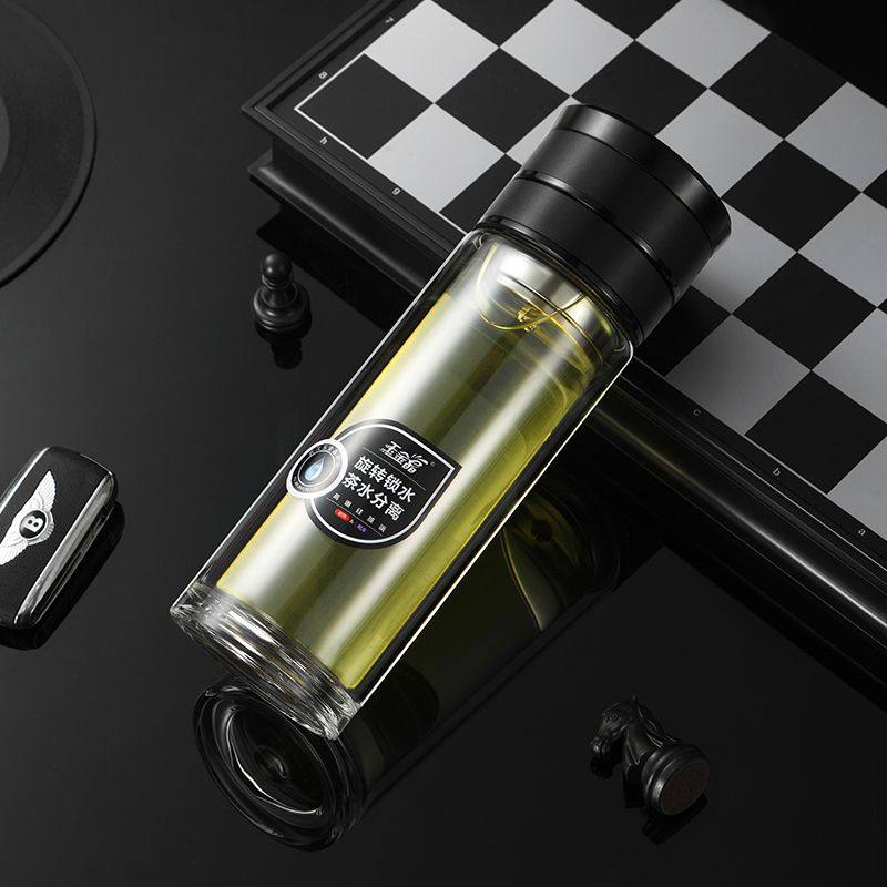 📚 机械盖旋转式茶水分离泡茶杯双层玻璃杯男士水杯便携杯子浓淡自控