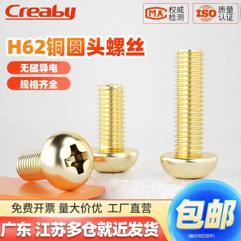 📚 黄铜圆头十字螺丝盘头机螺丝全铜螺丝钉小累丝钉M2M2.5M3M4M5M6M8