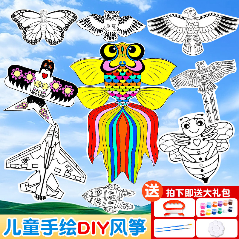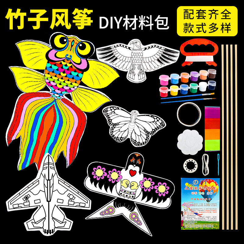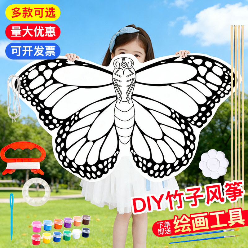 📚 竹子风筝儿童diy材料包涂鸦绘画纸鸢蝴蝶老鹰微风易飞2026新款