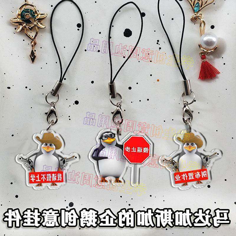 📚 马达加斯加恶俗企鹅手机挂件创意搞怪手机链学生书包装饰不要上学