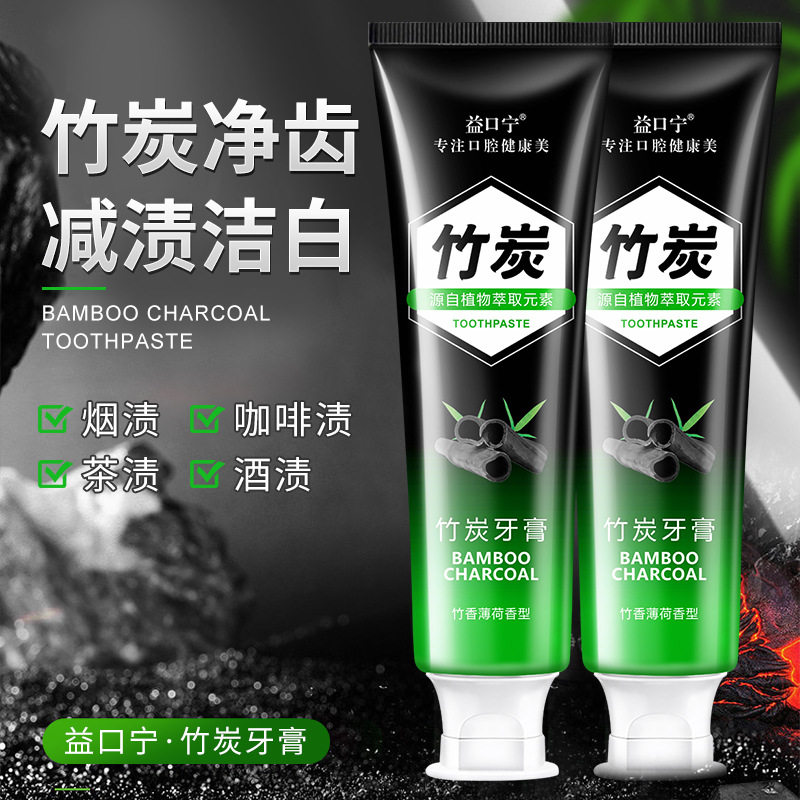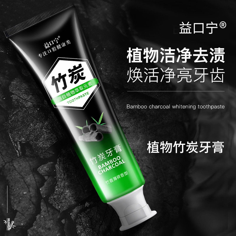 📚 网红直播益口宁竹炭牙膏洁白清新口气活性炭牙膏椰子壳黑炭120g