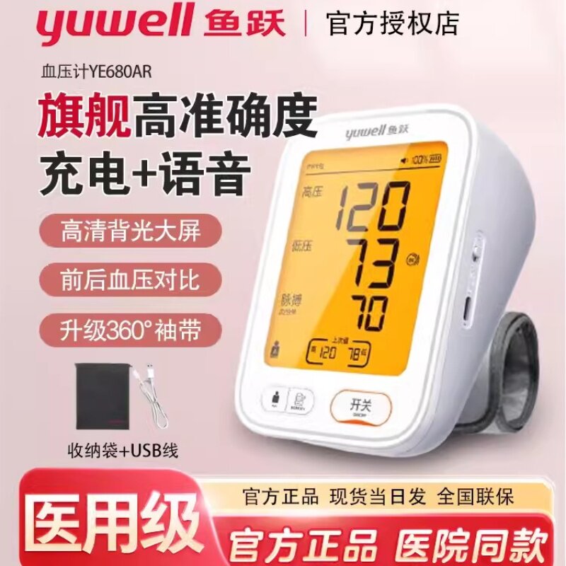 📚 鱼跃电子血压计YE680AR家用老人上臂式血压测量仪高精准医用准度