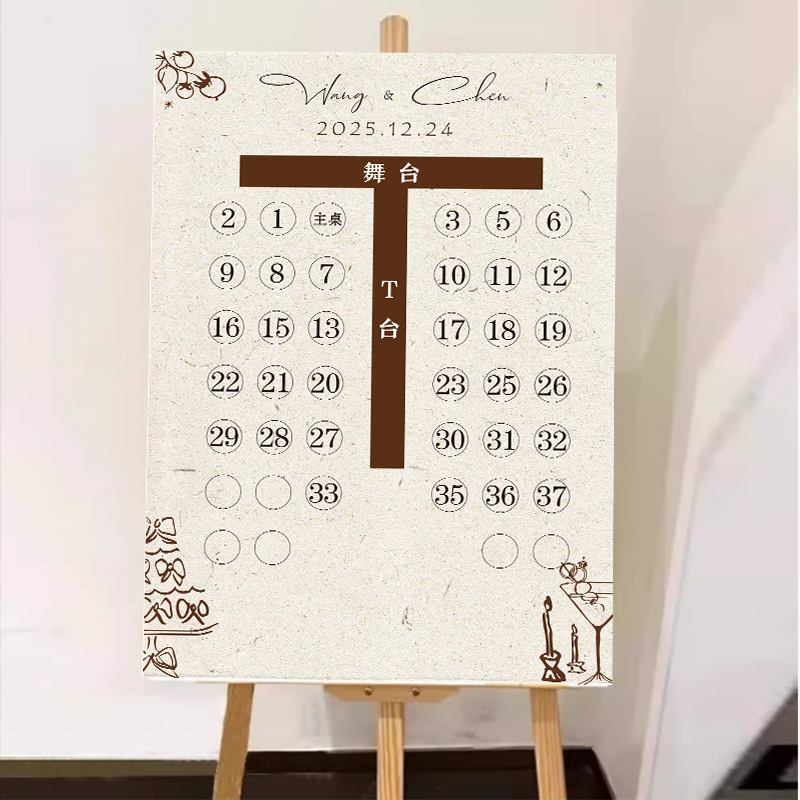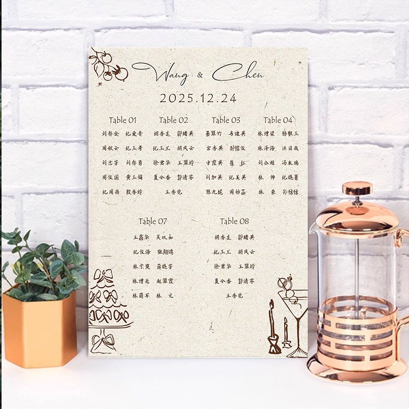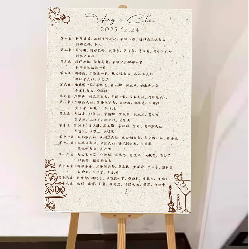 📚 定制新式婚礼座位图婚礼座位图复古文艺年会活动指引牌席位图名单