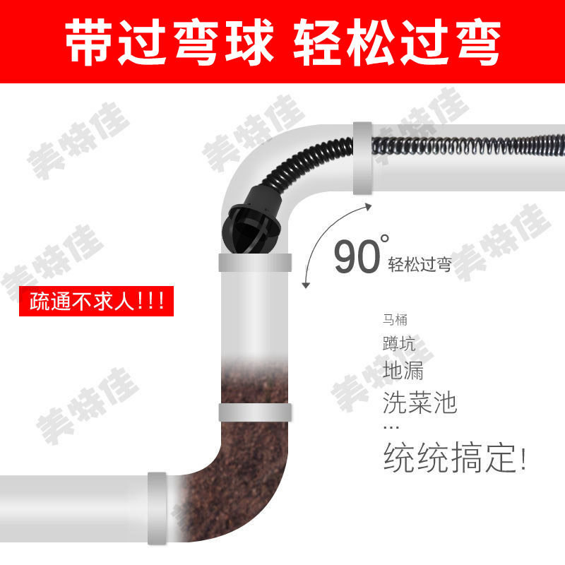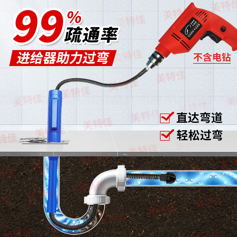 📚 管道过弯器下水道疏通神器马桶厨房地漏堵塞疏通器下水道进给器