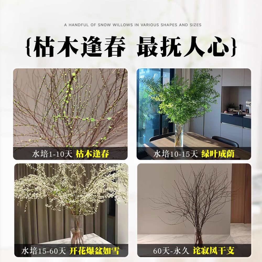 📚 水培植物雪柳鲜枝龙柳冬季红梅腊梅室内好养活绿植净化空气吸甲醛