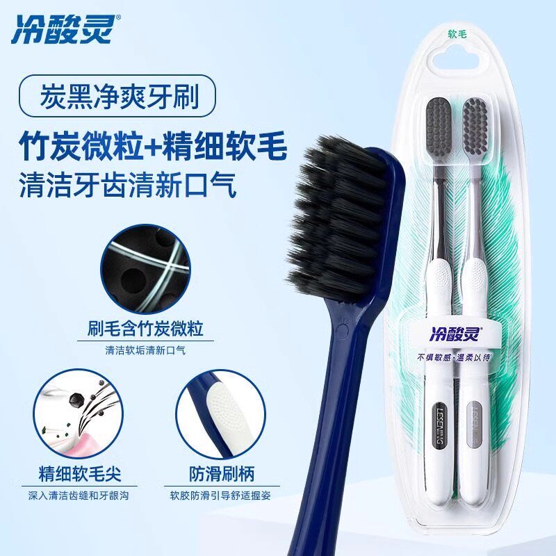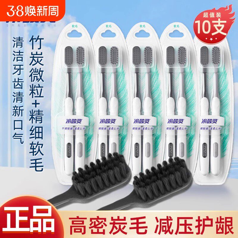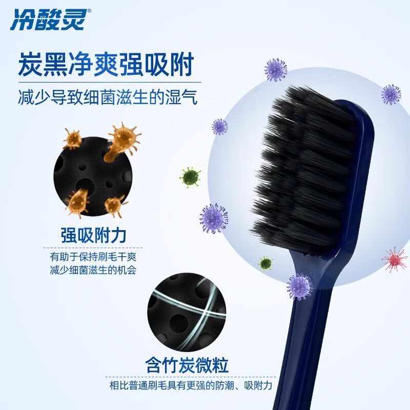 📚 冷酸灵牙刷软毛竹炭牙齿护龈成人专用情侣家庭装小头清洁口腔炭黑