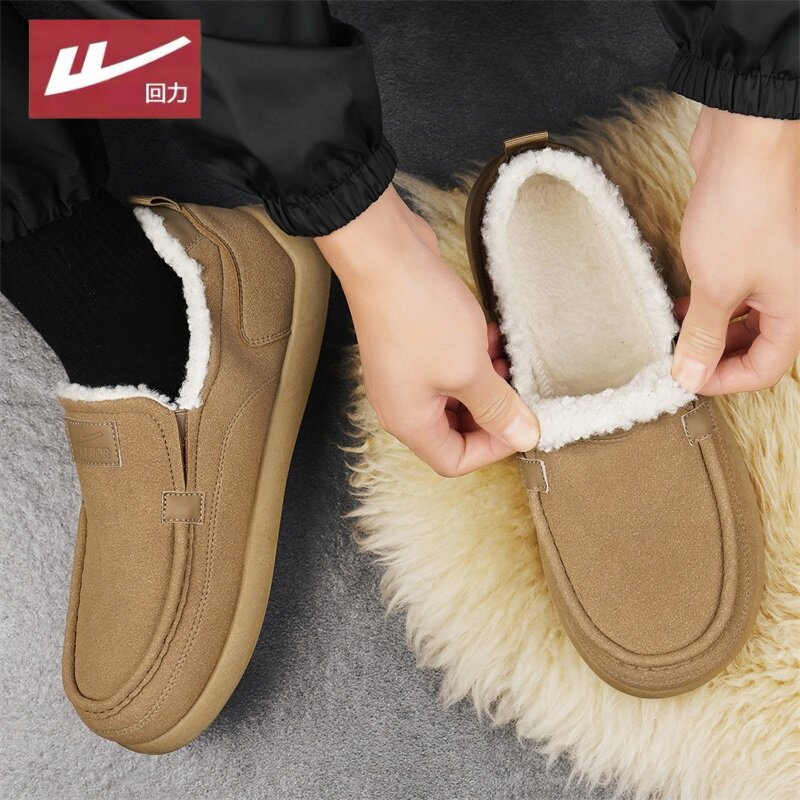 📚 回力男鞋2026新款冬季加厚保暖雪地靴一脚蹬软底棉鞋老北京布鞋子