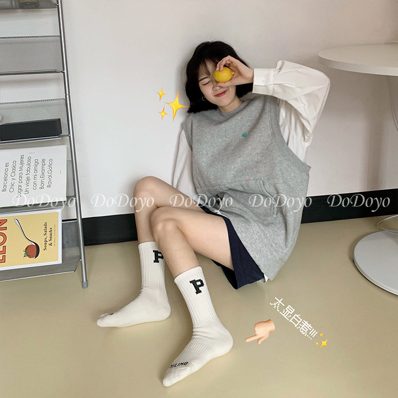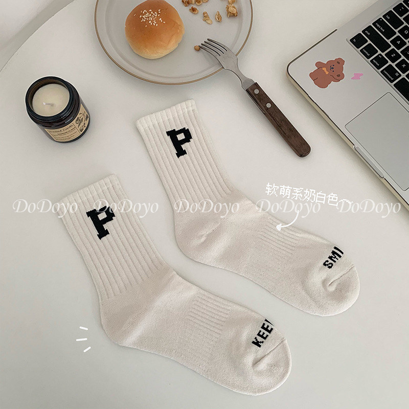 📚 DODOYO P字母袜子女秋冬加厚毛巾底中筒袜日系INS潮运动堆堆长袜