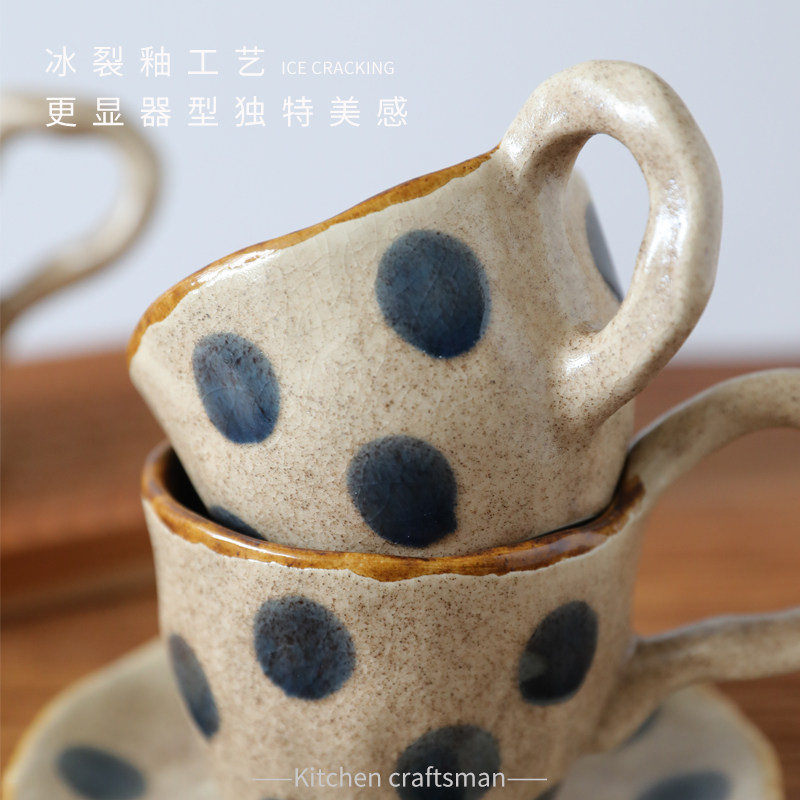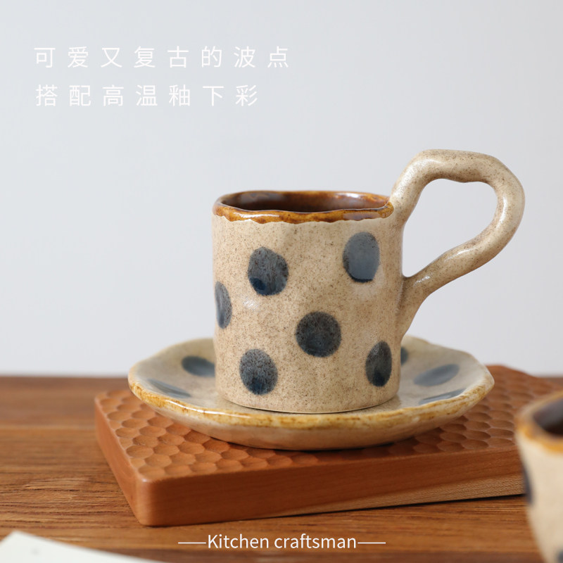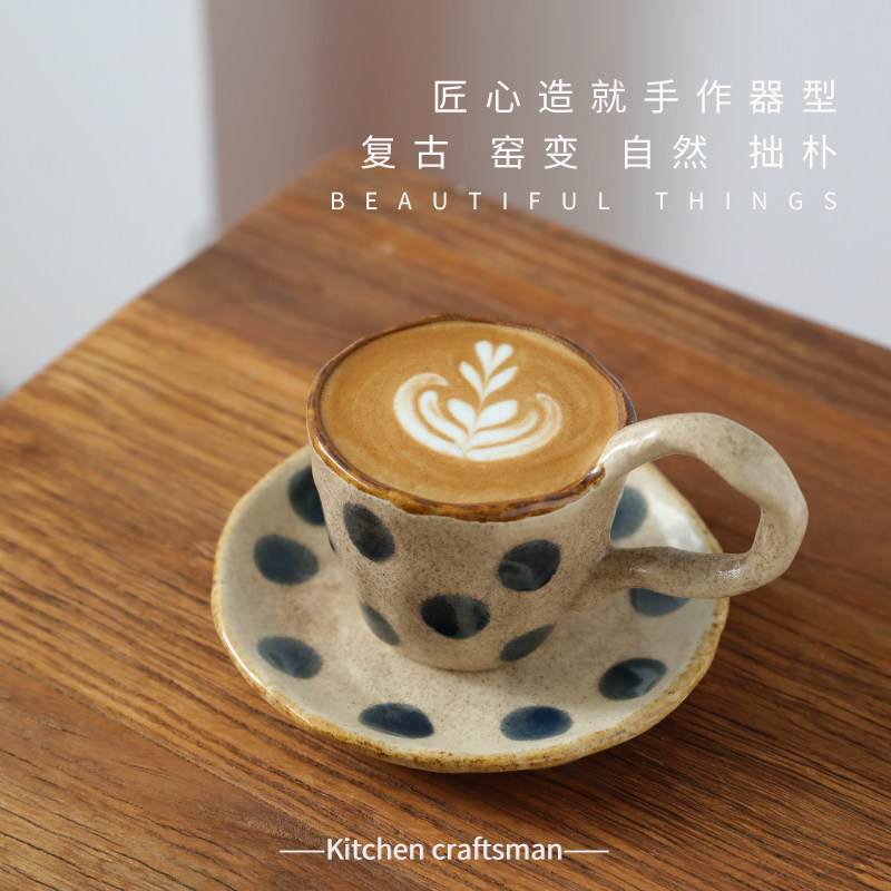 📚 日式粗陶复古窑变咖啡杯碟拿铁拉花手捏波点马克杯创意水杯情侣杯