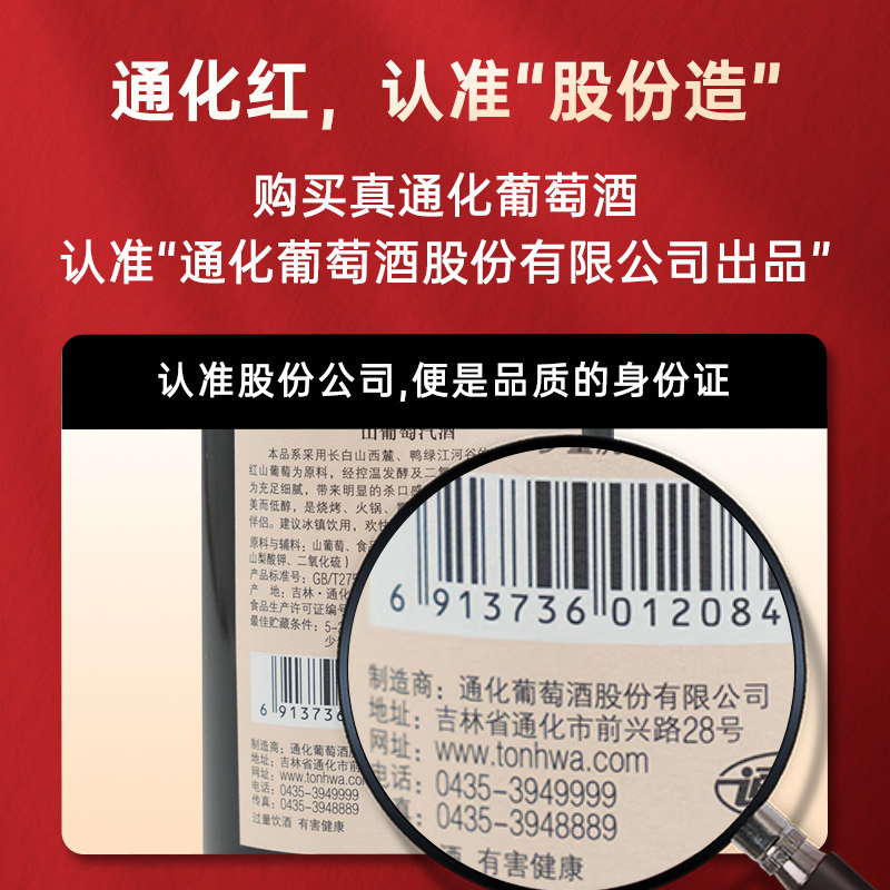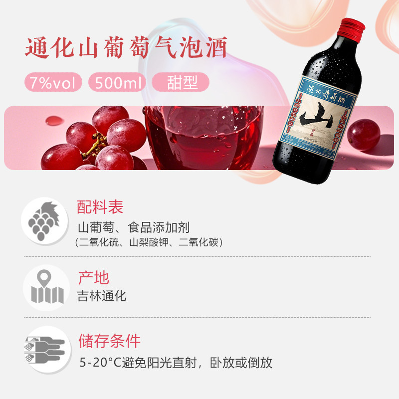 📚 通化葡萄酒山葡萄起泡酒甜型红酒低度微醺搭配烧烤500ml*6瓶整箱